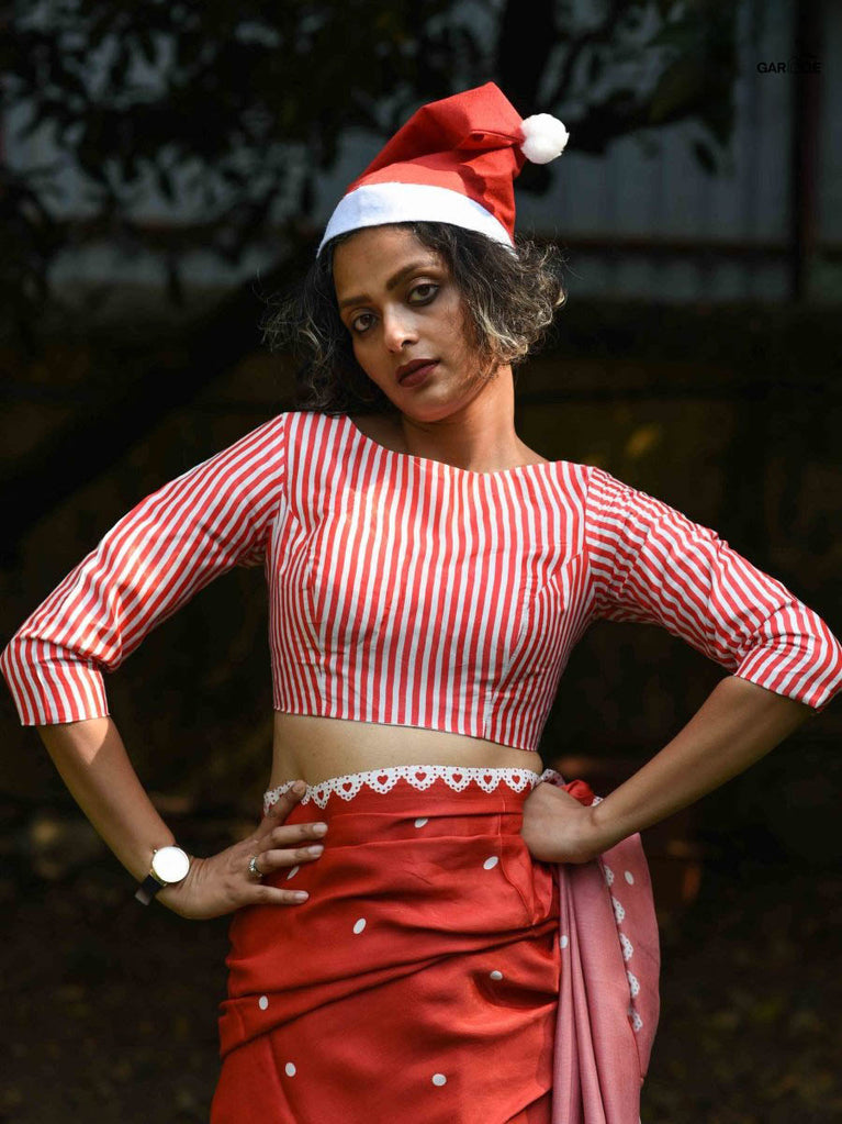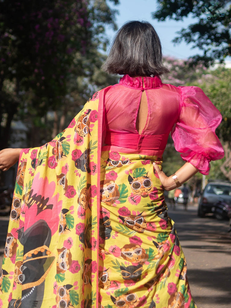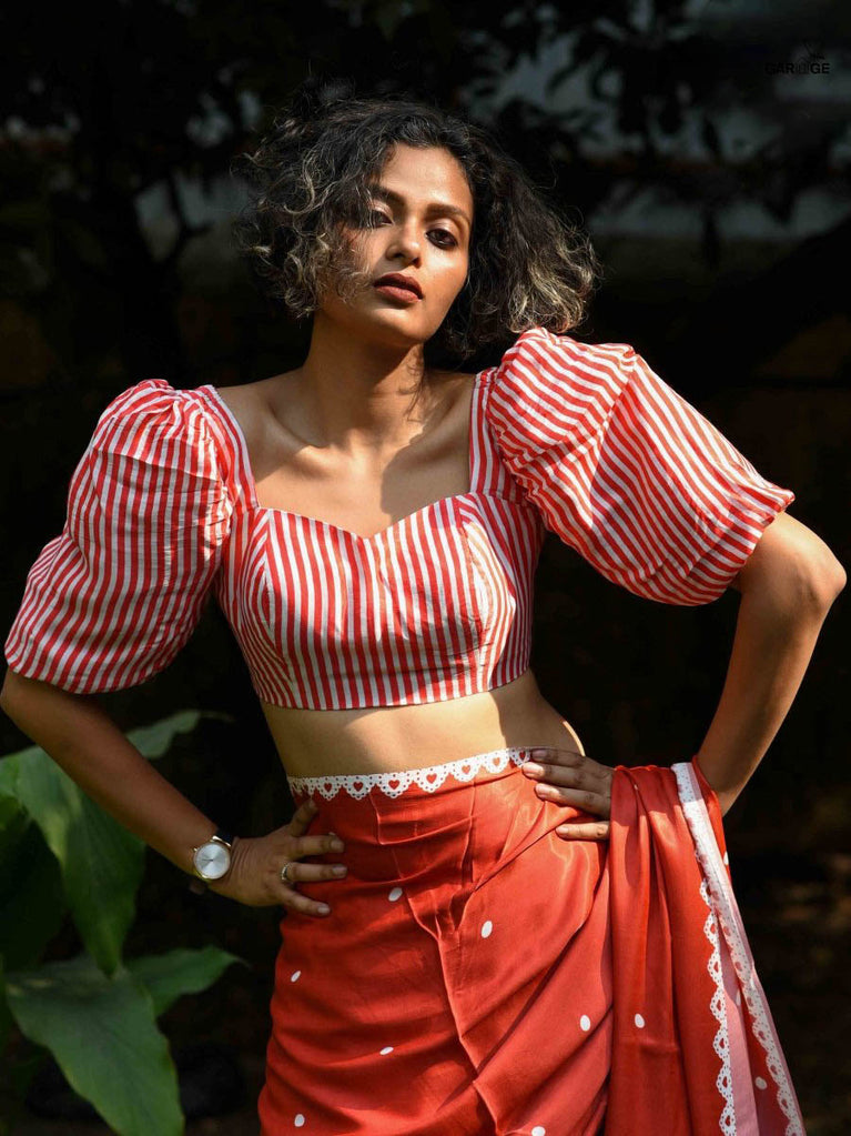 Blouse : The model is wearing size S blouse and the saree is Sherni Billi