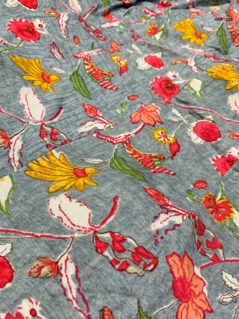 Rayon is fabricated by blending cotton and other cellulose fibres that are obtained from natural or synthetic sources. Although it is not a naturally occurring fibre, this man-made fabric is one that is breathable and has cooling properties. It is light yet has an intrinsic shine that elevates colours and designs on the fabric further. Rayon cotton is