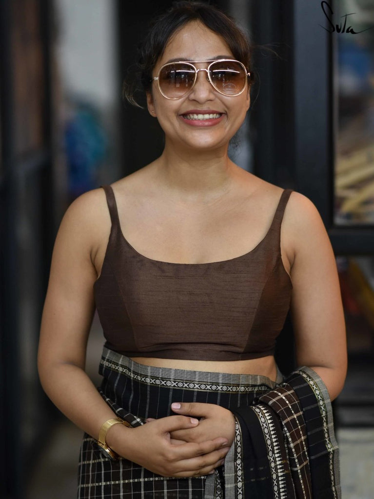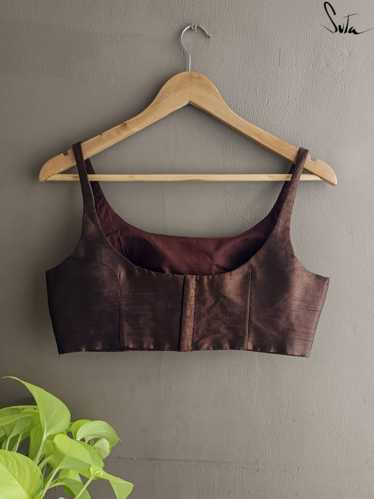 This stunning brown art silk blouse is as essential and as precious as the soil that nurtures us.