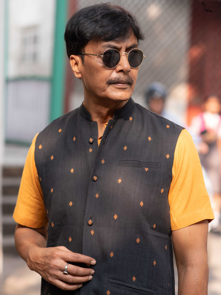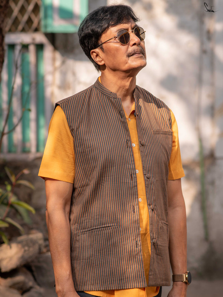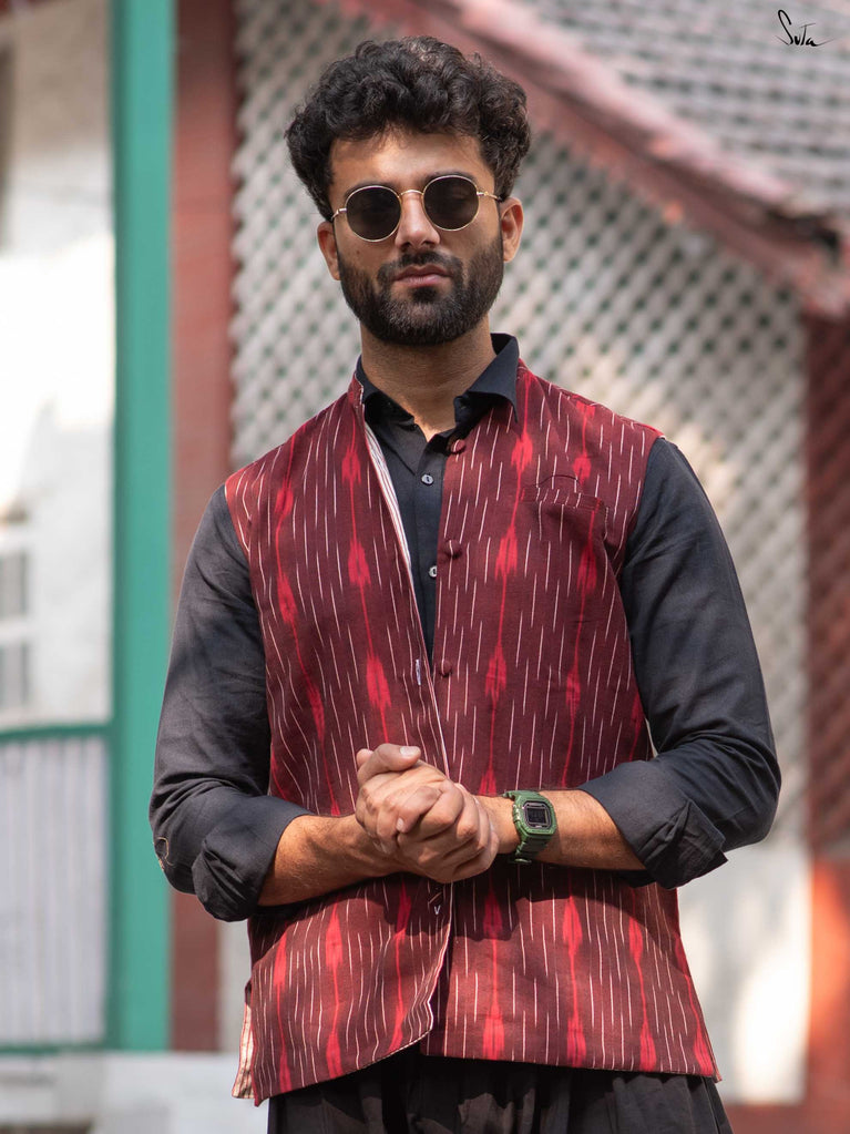 Sleeveless with a classic Chinese collar and functional pockets, this Nehru jacket moves easily from workdays to brunches to evening plans. Style it over kurtas, shirts, dresses or however the day feels. Because sometimes, one mood just isn’t enough.