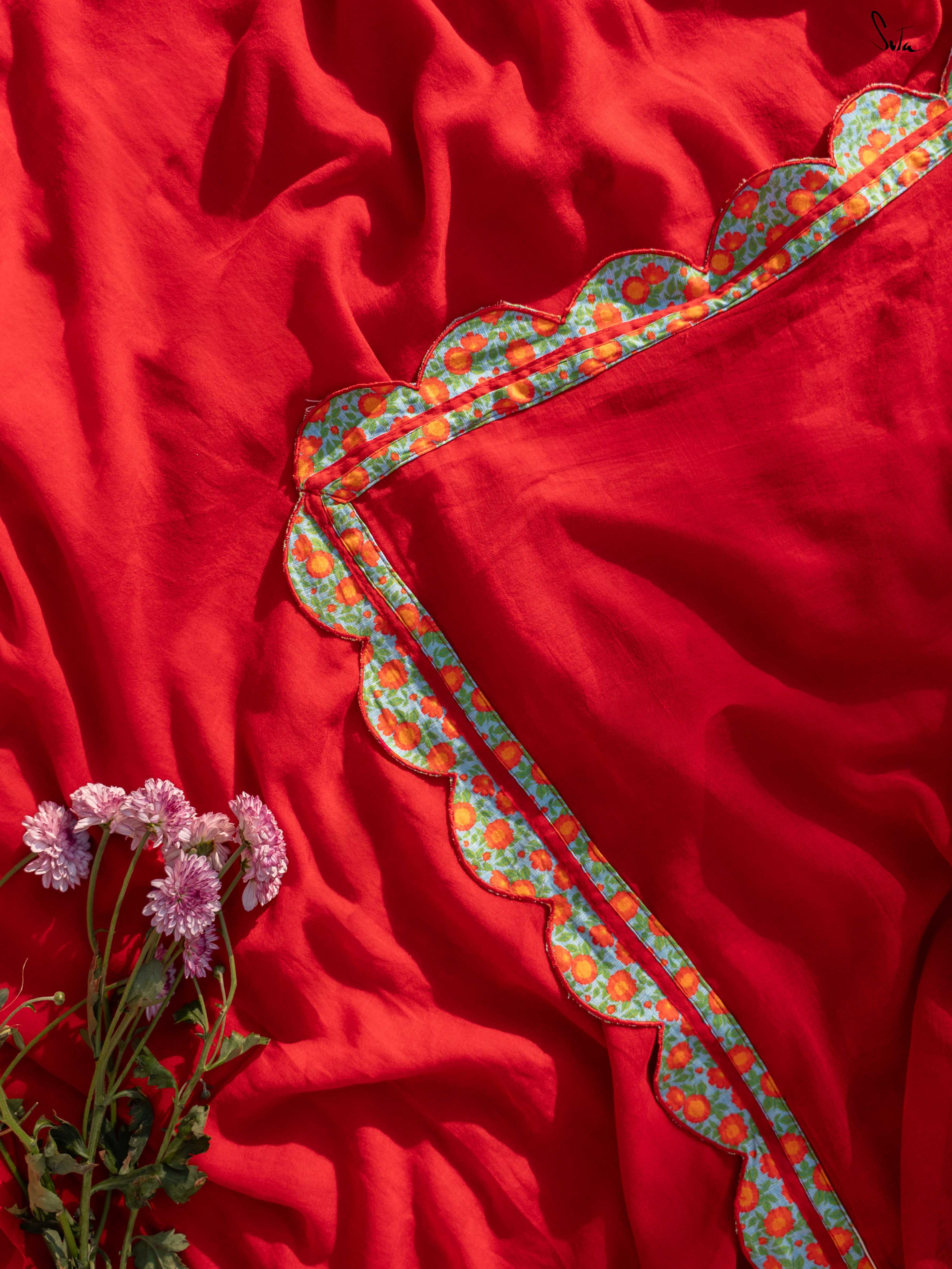 The kind of saree you forget you’re wearing, until someone asks where it’s from. Made from pure Mul Mul cotton, this maroon drape feels weightless, breathable, and incredibly soft on the skin. It moves easily with you through long days and slow moments, while the attached multicolour floral printed scallop border adds a gentle rhythm and quiet confidence. Comfort first, beauty always, this is softness you come back to.