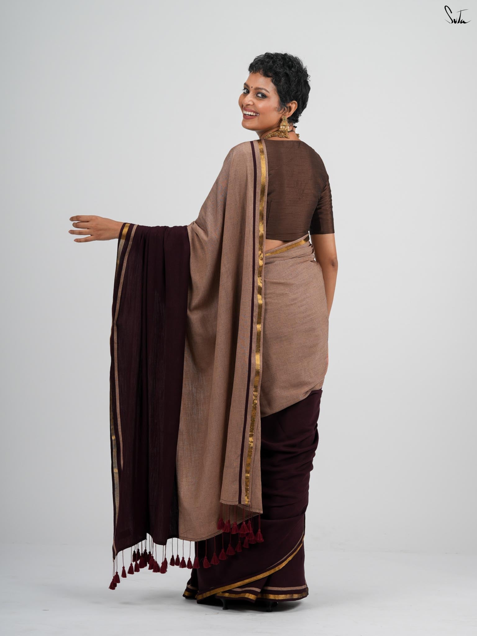 Cotton fabric dates back to some of the most ancient civilisations and it has a strong presence in the modern wardrobe as well. The softness and lightness of cotton combined with its strength and versatility makes it one of the most popular choices, especially for the Indian climate. We took this simple, elegant fabric and combined it with acrylic for that added sheen and voila! We love what we see and the saree falls so  beautifully that it feels like second-skin!