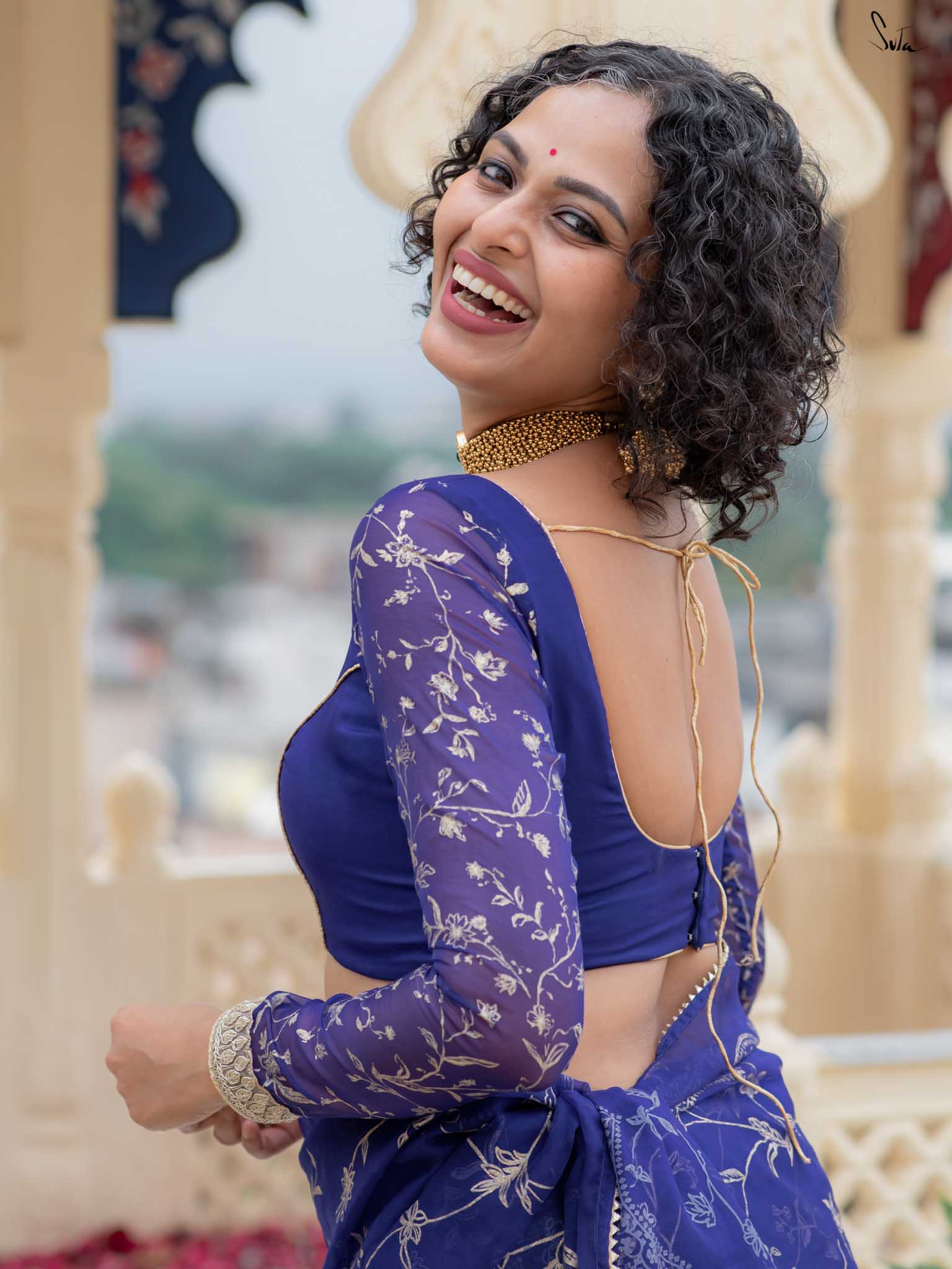 Designed with French seams and a back hook-and-knot closure, it combines comfort and elegance seamlessly. Ideal for pairing with matching sarees, this blouse adds effortless glamour to weddings, Diwali nights, or festive gatherings.