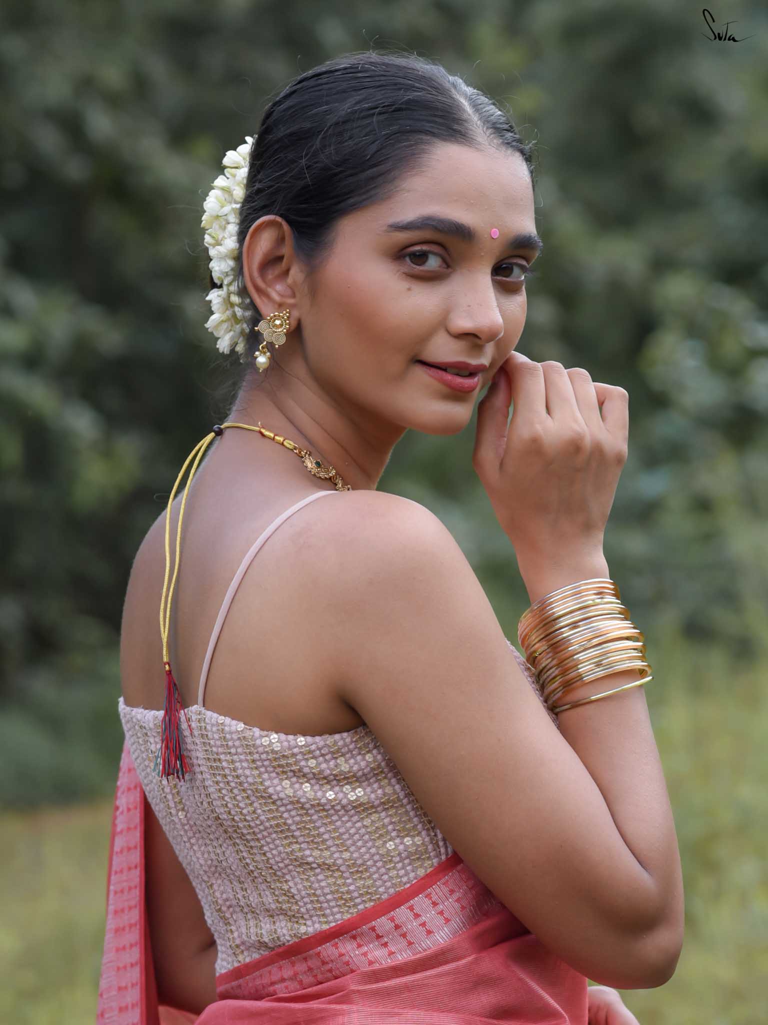When the moment calls for a little sparkle, Full Chaandi answers. This baby pink blouse shimmers with delicate sequin embroidery that catches every flicker of light. The square neckline and dainty spaghetti straps lend it a modern, romantic charm that’s perfect for weddings, cocktails, or festive evenings under fairy lights. Light, luminous, and full of joy, it’s your cue to shine, head to toe.
