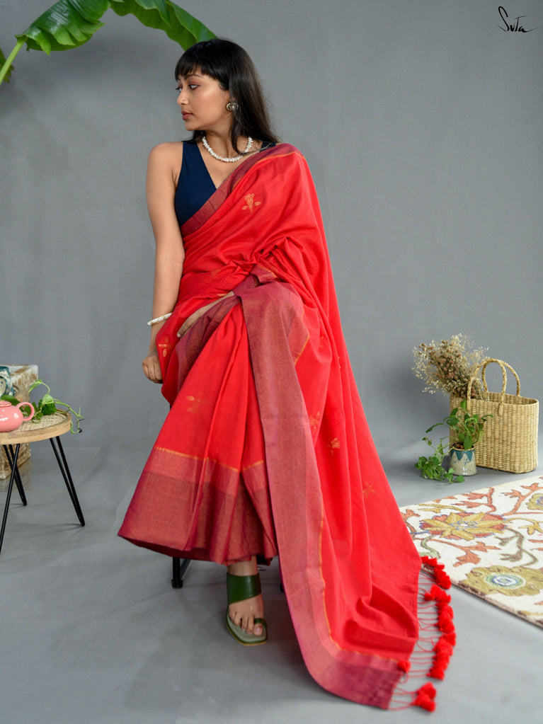 Note: Our mul sarees are slightly transparent, it’s the nature of the fabric and part of its soft, airy charm.