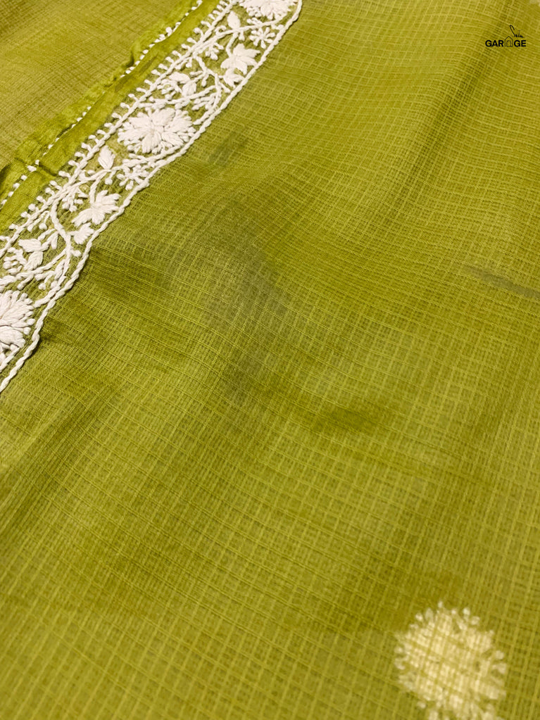 Kota cotton fabric is renowned for its softness, light weight and ease of wear. It is made using an open weave with fine checks, which are called ˜khats. This weave ensures that the resultant fabric is airy and comfortable. This Kota cotton fabric forms the base of these sarees, which are further embellished with Lucknowi chikankari work. Chikankari is a style of embroidery that has its roots in Lucknow, the capital of Uttar Pradesh. The word 'chikan' is derived from the Persian word 'chikeen'. In its most traditional form, chikankari work reflects the influence of the intricate carving patterns found in Mughal architecture. The legacy of chikan work in Lucknow dates back to more than 200 years.