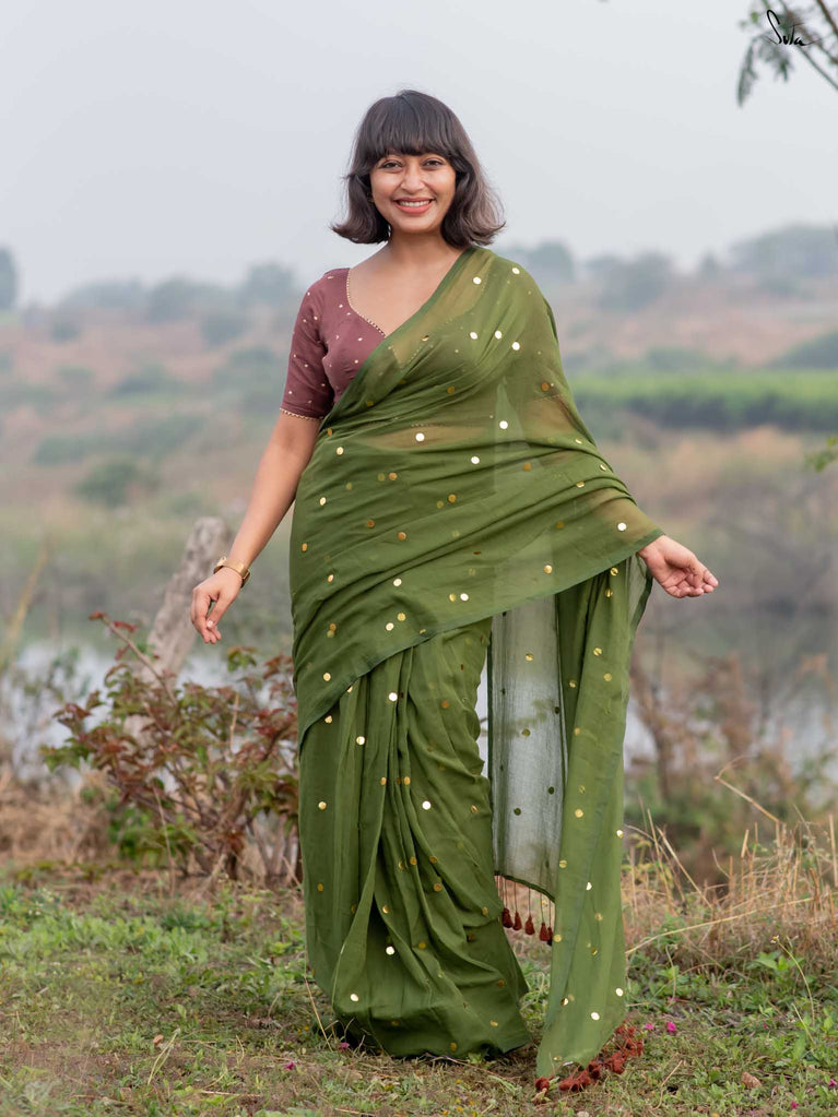 Ideal for weddings, festive Diwali nights, or bridesmaids who want to shine, this airy saree brings glamour, radiance, and effortless elegance to every occasion.