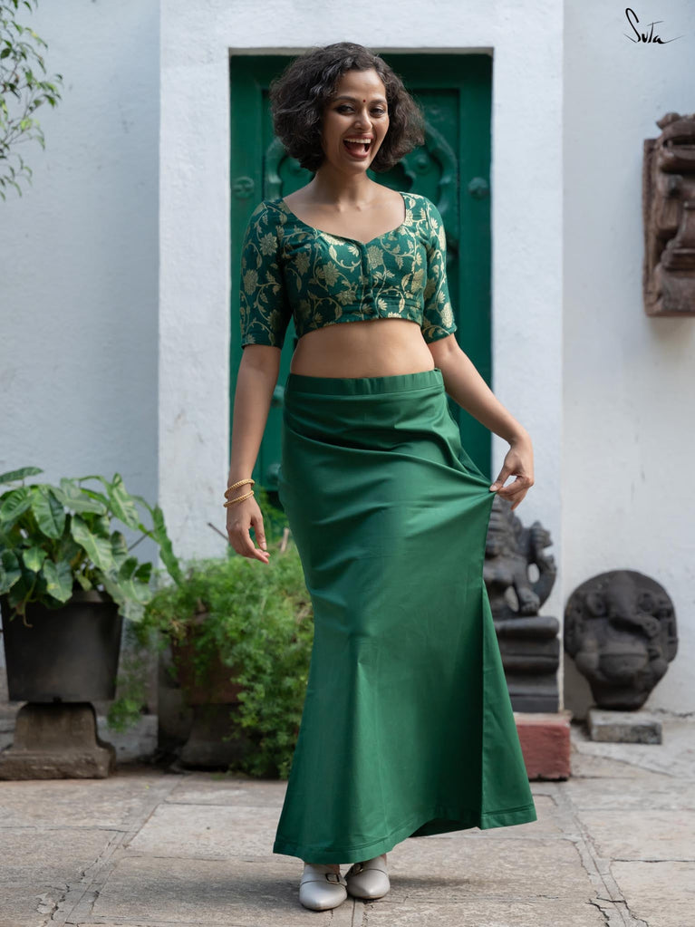 Indulge in the magical comfort of Emerald Gills, an underskirt crafted from breathable cotton lycra! The stretchable design ensures a full range of motion, creating a flawless silhouette that makes you feel confident and radiant. Wrapped in luxurious dark green, this underskirt is a masterclass in blending comfort and style.