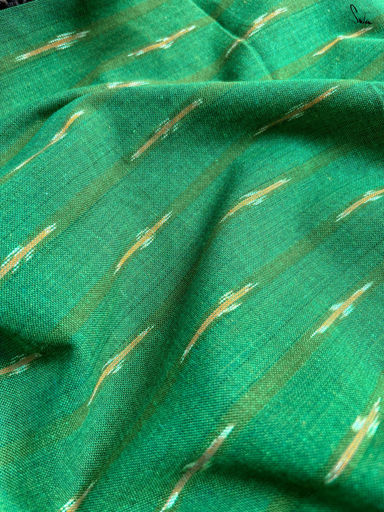 A gold saree that feels regal and luminous. The shade glows with liquid confidence and timeless charm. The geometric dobby border adds texture and balance, giving the saree a refined finish. Perfect for festive evenings that call for effortless elegance. Comes with a matching blouse piece, no fall.
