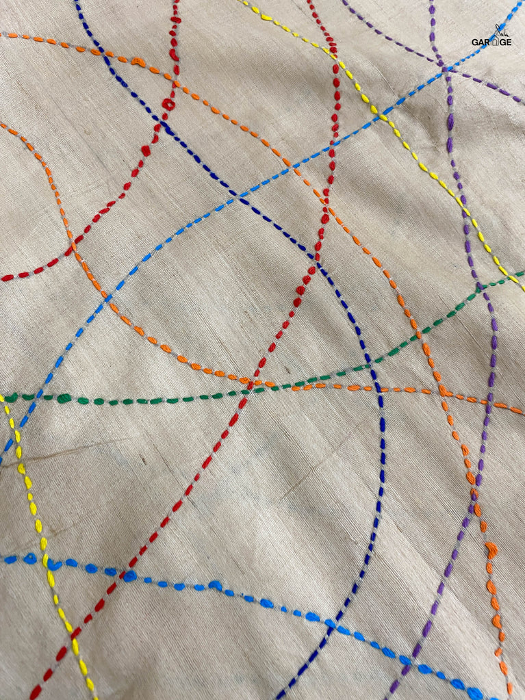 Kantha is traditional art that originated right in the heart of loving households of the Bengal region where the industrious women upcycled fabric bits into quilts, blankets and clothing by stitching them together and then crafted beautiful embroidery patterns across the kaleidoscope of fabrics. The artisans use spectacular motifs and delicate stitching techniques to create stunning art.