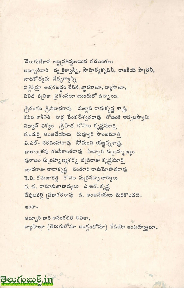 అబ్బూరి వారి మిత్రులు అభిమానులు ,శిష్యులు వారి రచనలు ,జీవిత చరిత్ర ప్రచురితమైతే బాగుంటుందని భావించడంతో ఈ సంపుటానికి శ్రీకారం చుట్టడం జరిగింది.