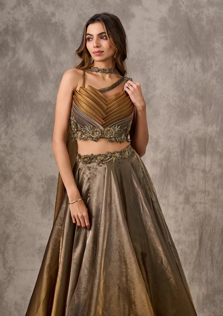 Jimmy Choo Fabric Lehenga with Designer Blouse & Fancy Choker Dupatta | 7-Meter Flare