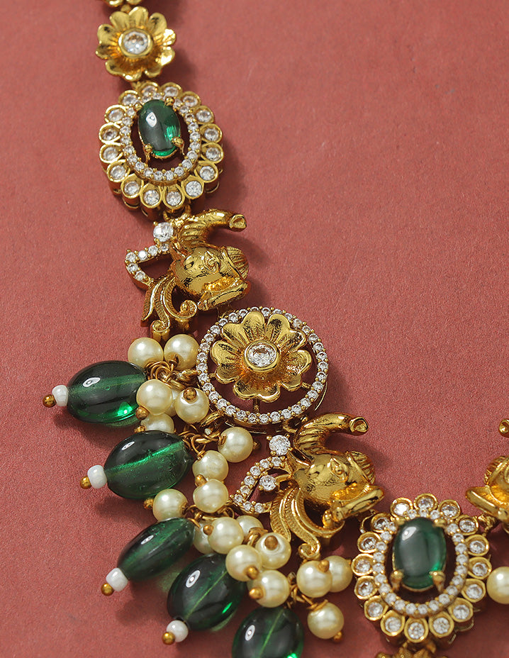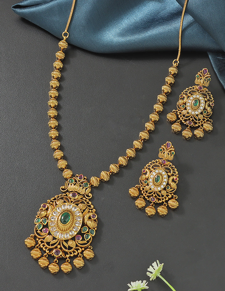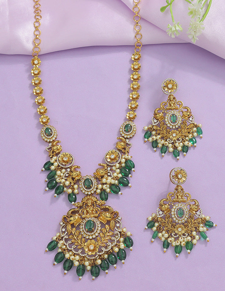 Designer Radiant Emerald Matt Kempu Necklace Set
