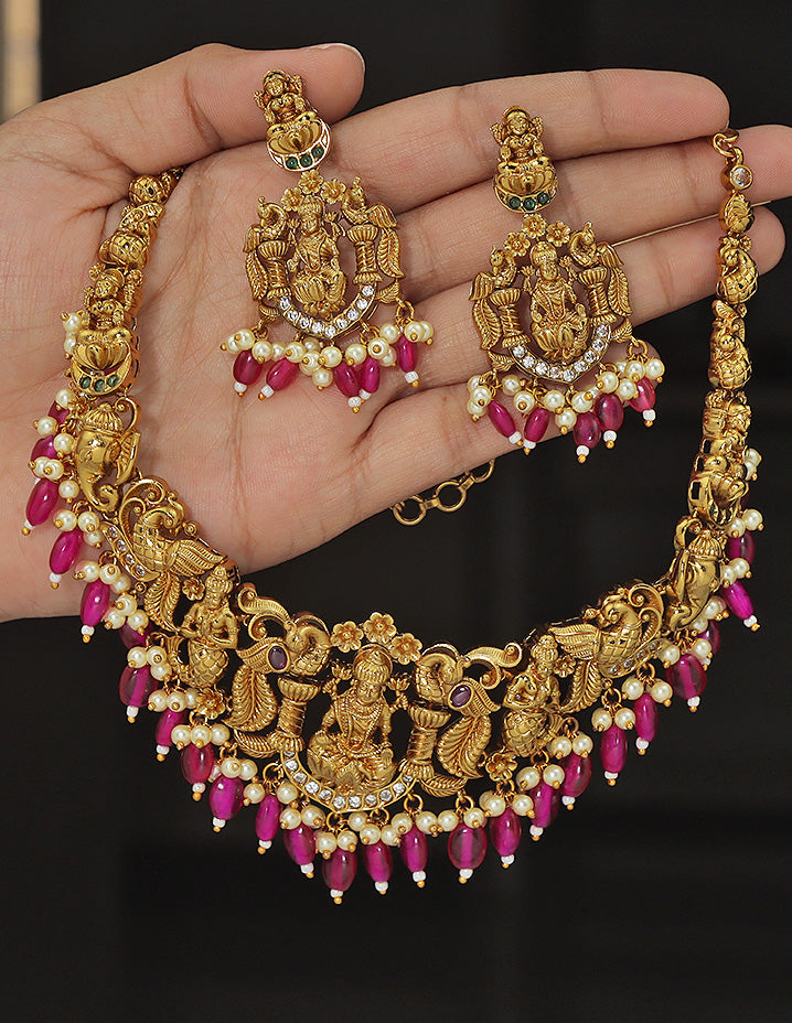Designer Lakshmi Devi Kempu Necklace Set