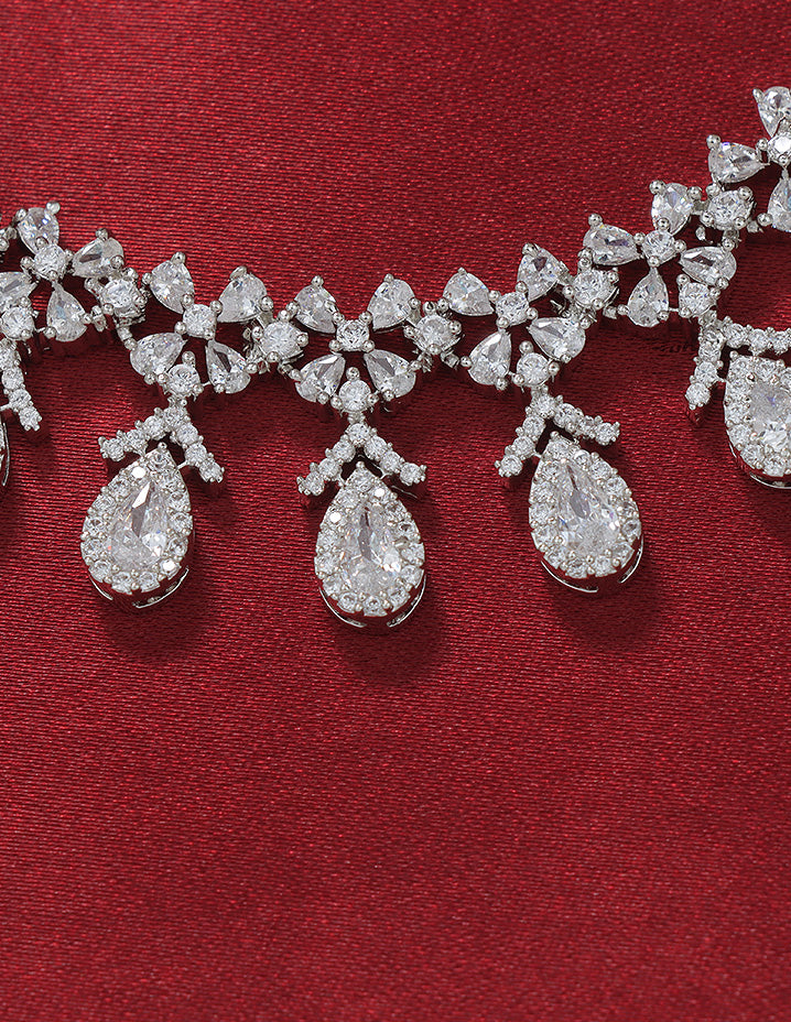 Designer Rhodium Polish Zirconia Necklace Set