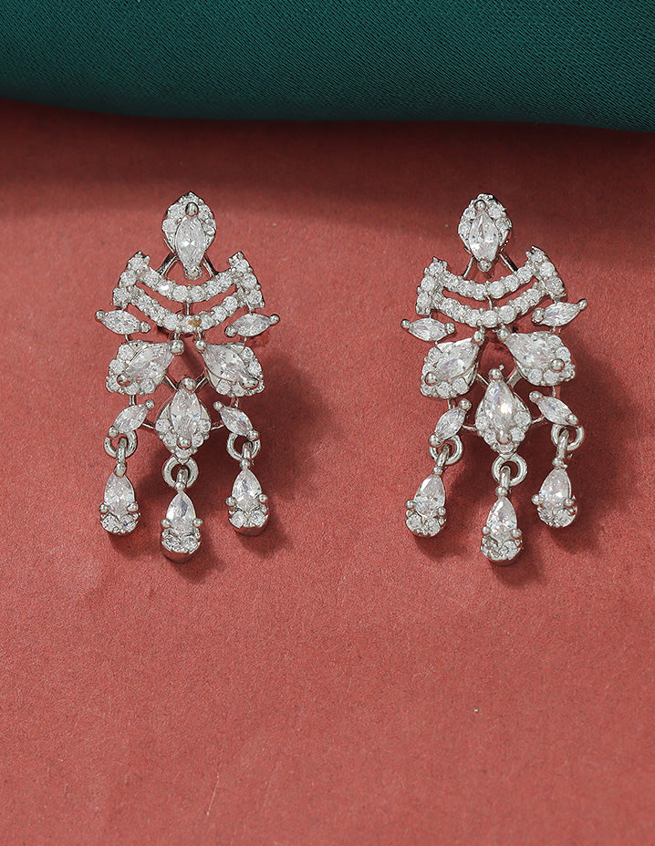 This Designer Black Beads Mangalsutra with rhodium polish adds a sophisticated touch to your party wear. Complete with matching earrings, it offers timeless elegance for special occasions.