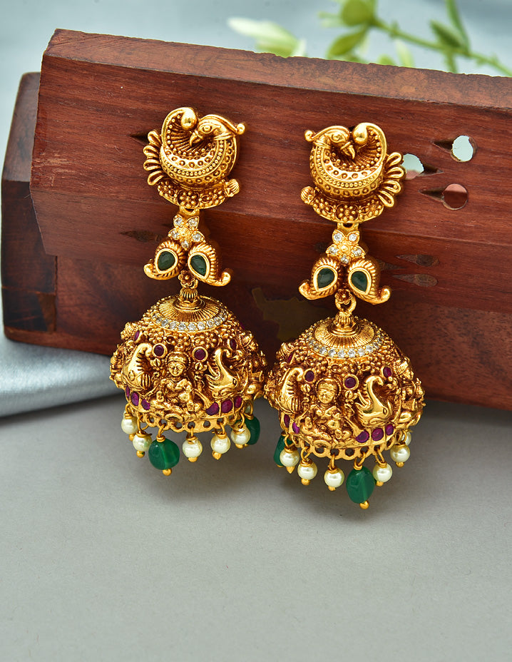 This beautiful Antqiue Gold Plated Kempu Long Haaram Set is made of the highest quality metalwork and embroidered with dazzling Ruby & Emerald stones Paired with matching earrings set in traditional ethnic artwork. it's perfect for any traditional occasion and makes a bold style statement with its eye-catching desi looks.