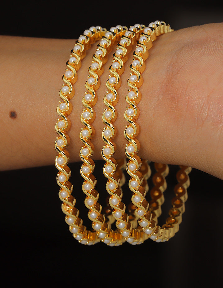 The perfect CZ bangles with Pearls attached – a stunning match for any saree or dress. Elevate your style effortlessly with these sparkling beauties, the ultimate accessory for any occasion!