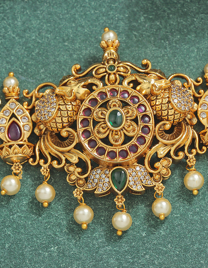 Designer Zirconia Antique Chain Vaddanam