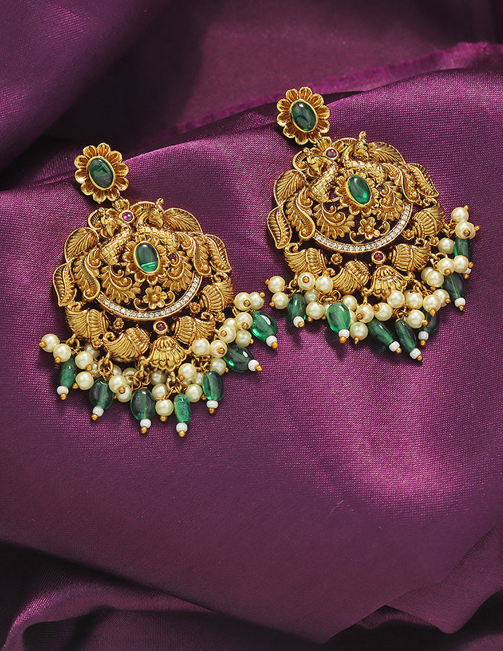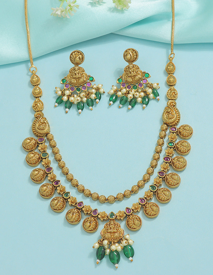 Designer Radiant Emerald Matt Kempu Necklace Set