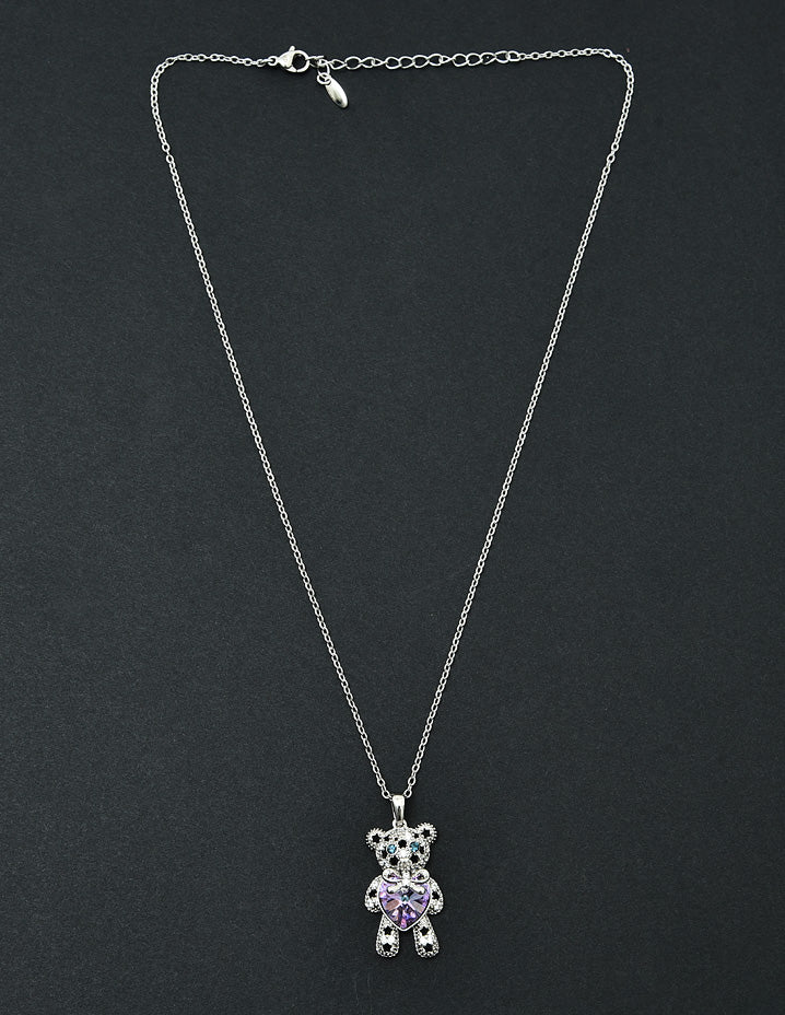 Swarovski Crystal Midnight Blue Teddy Bear Chain Pendant