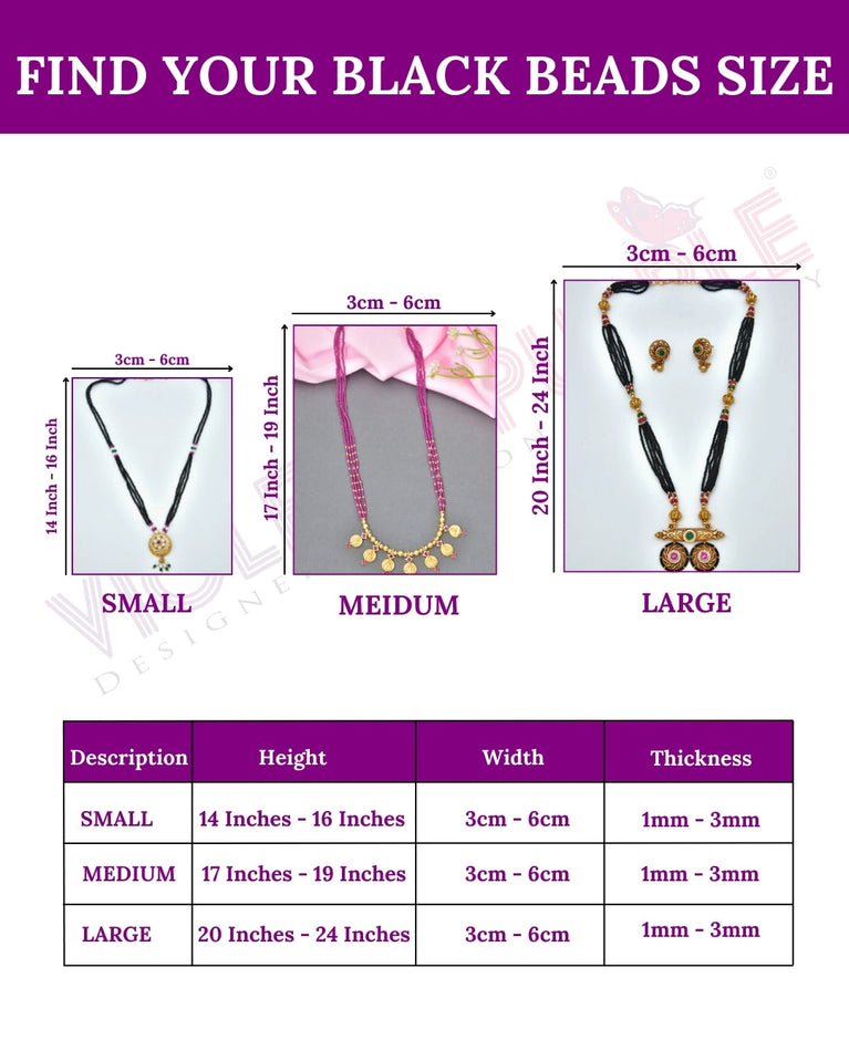 This Designer Black Beads Mangalsutra with gj polish adds a sophisticated touch to your party wear. Complete with matching earrings, it offers timeless elegance for special occasions.