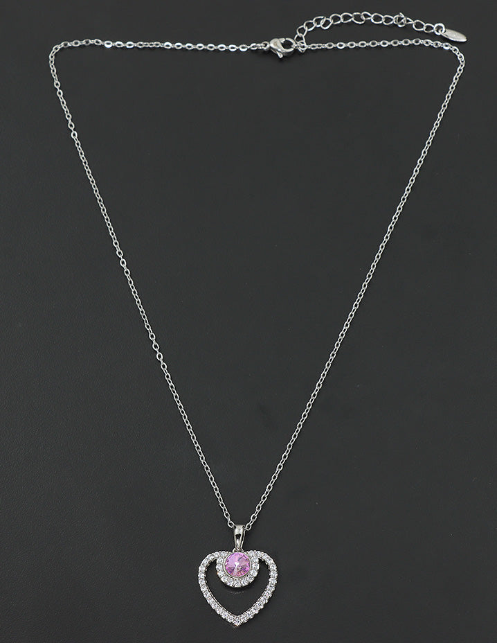 A dazzling heart-shaped pendant adorned with shimmering stones and a radiant purple centerpiece — perfect to add a touch of romance and sparkle to any outfit. 💜✨