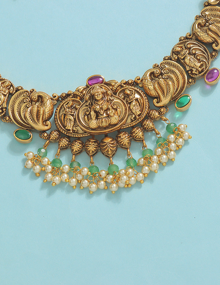 Designer Lakshmi Devi Emerald Matt Kempu Necklace Set
