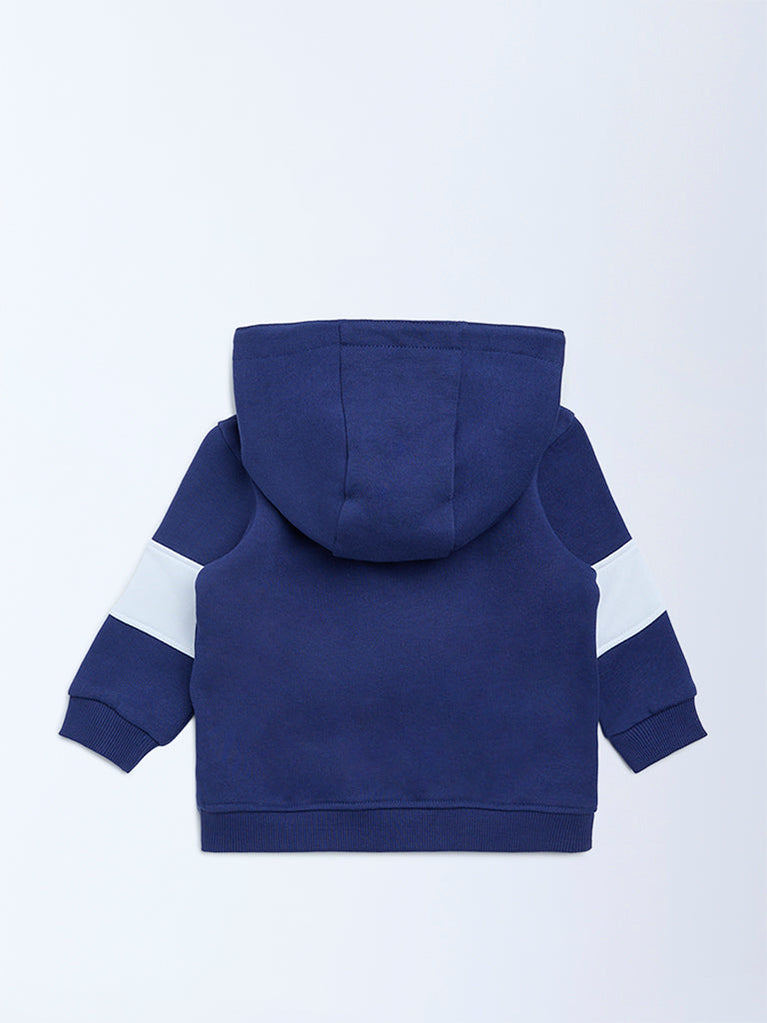 HOP Baby Boys Navy Printed Hooded Cotton Sweatshirt