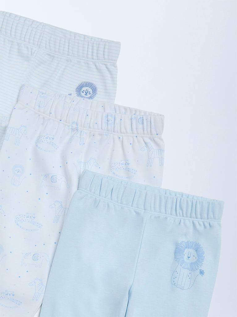 HOP Baby Boys Blue Printed Mid-Rise Cotton Pants - Pack of 3
