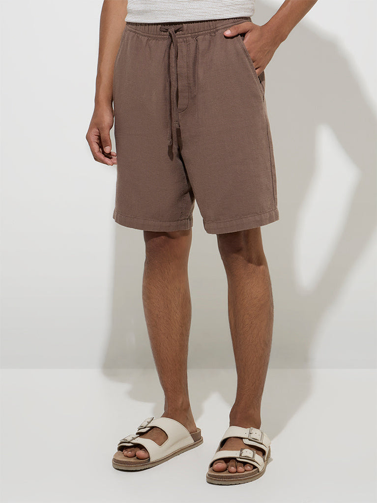 ETA Brown Relaxed-Fit Mid-Rise Cotton Shorts