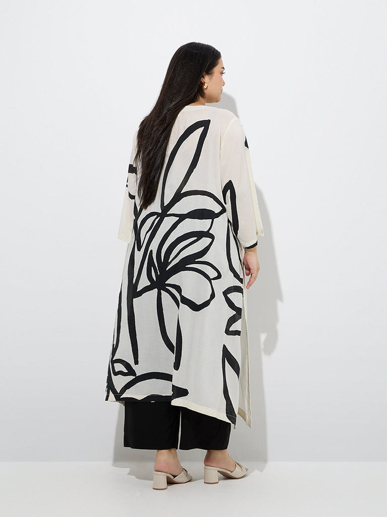 Diza introduces this off-white kurta featuring abstract prints that bring a contemporary flair to everyday ethnic wear. Sculpted in a flattering A-line silhouette from a breathable fabric, it offers all-day comfort with effortless style. A discreet slip pocket adds a practical touch, making it as functional as it is elegant.