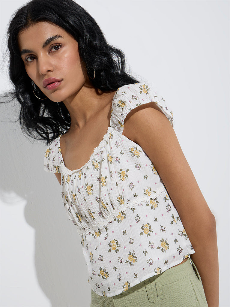 Ascot Off-White Floral Pattern Relaxed-Fit Shirt