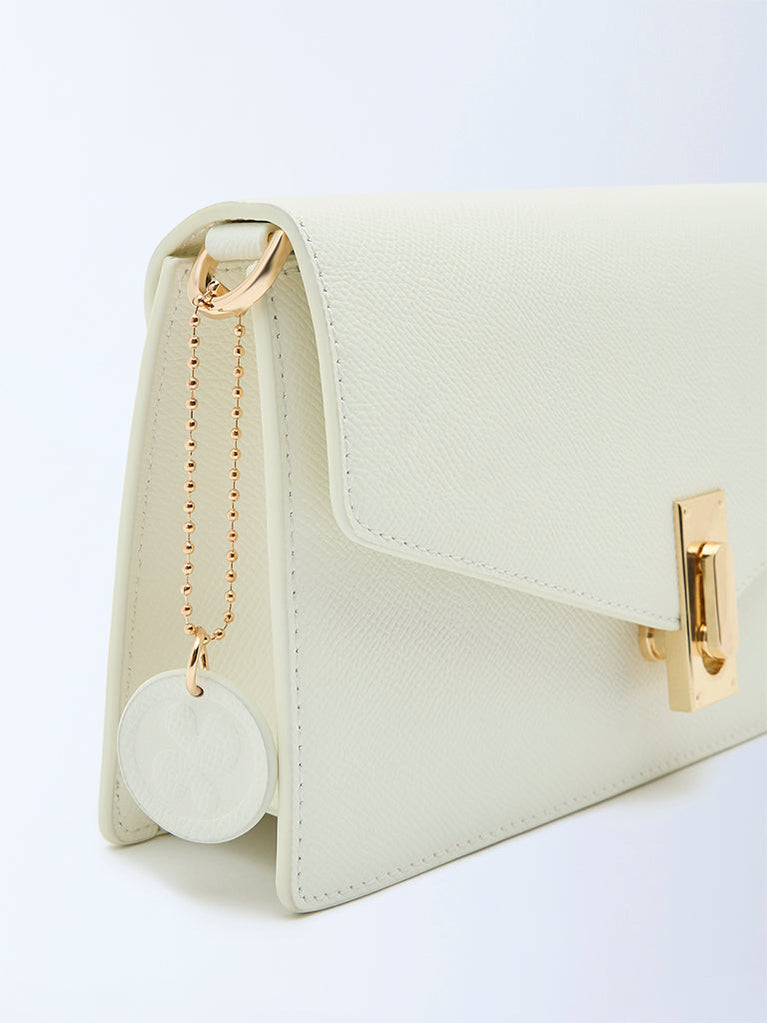 Details•Ivory leather•Quality lining•Detachable shoulder strap with pouch•Internal slip pocket•Gold push-lock closure•Decorative leather POME charm