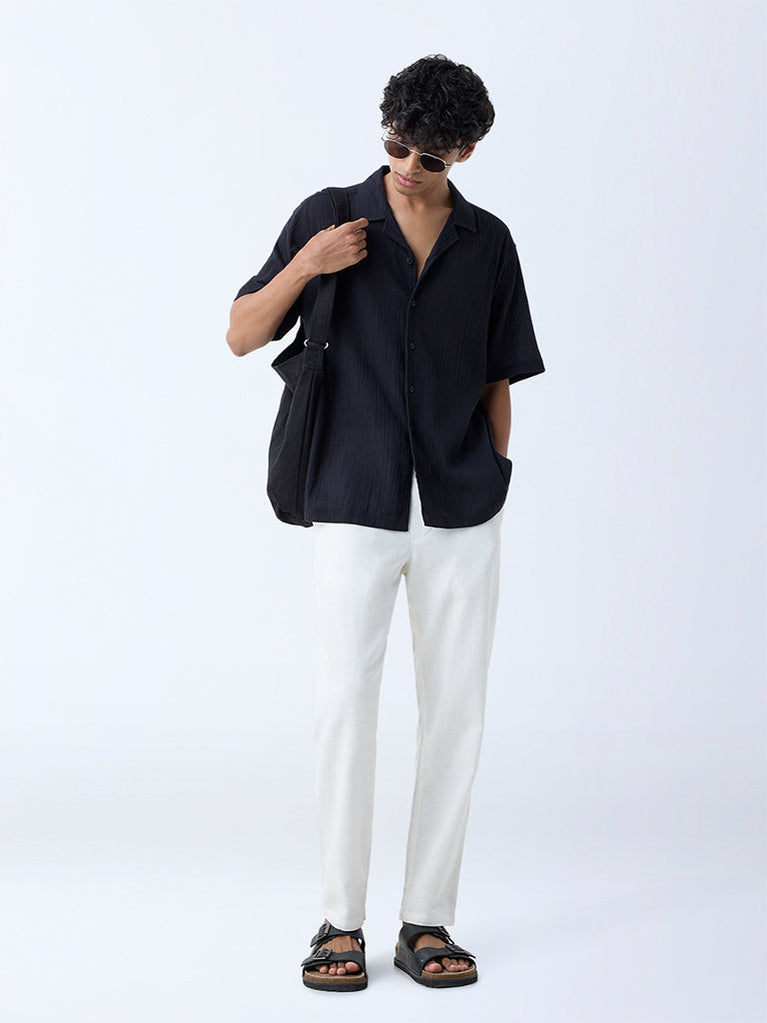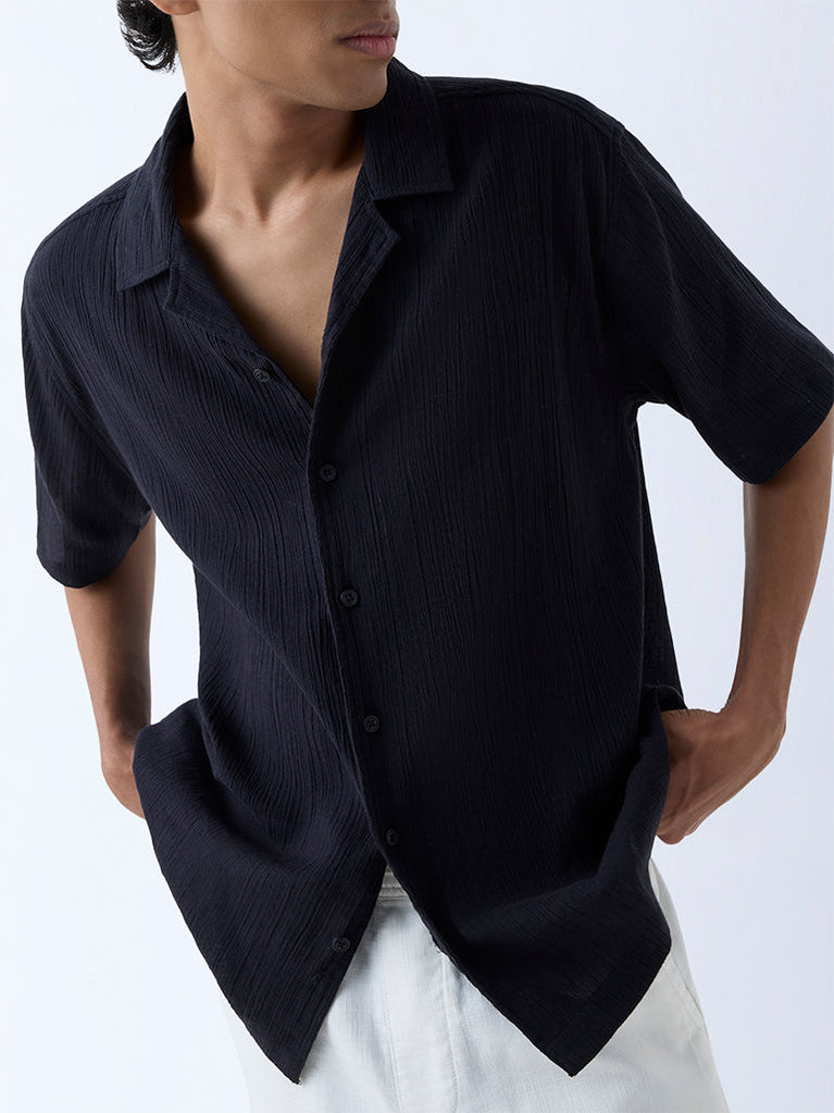 ETA Black Crinkle Textured Relaxed-Fit Cotton Shirt