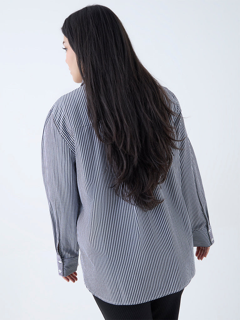 Gia Black Stripe Printed Cotton Shirt
