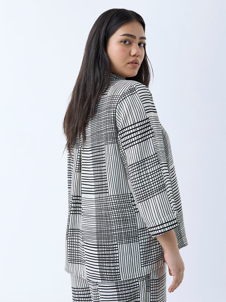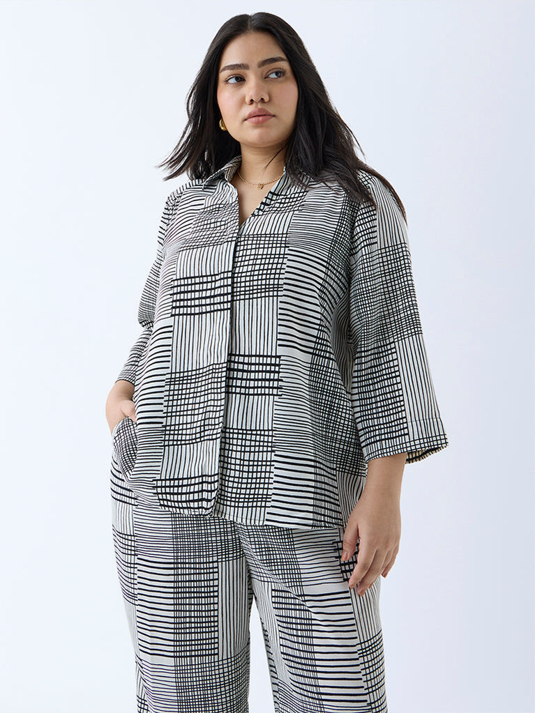 This black shirt from Gia stands out with its modern take on checkered prints, offering a graphic edge to everyday styling. Spun from an ultra-lightweight fabric, it features a shirt collar, a concealed button placket, and three-quarter sleeves for a streamlined finish.