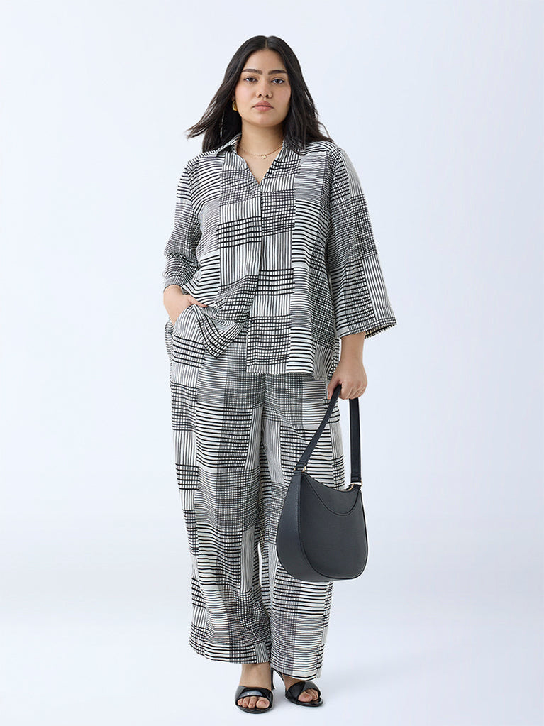 ETA Black Stripe Printed Relaxed-Fit Cotton Shirt