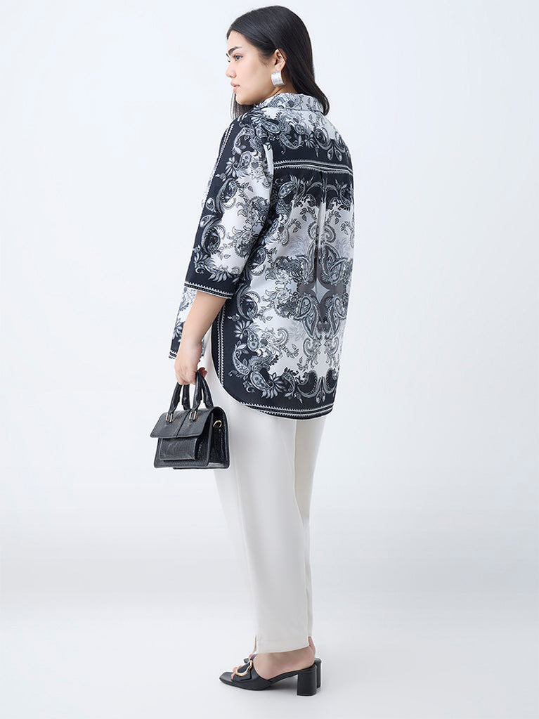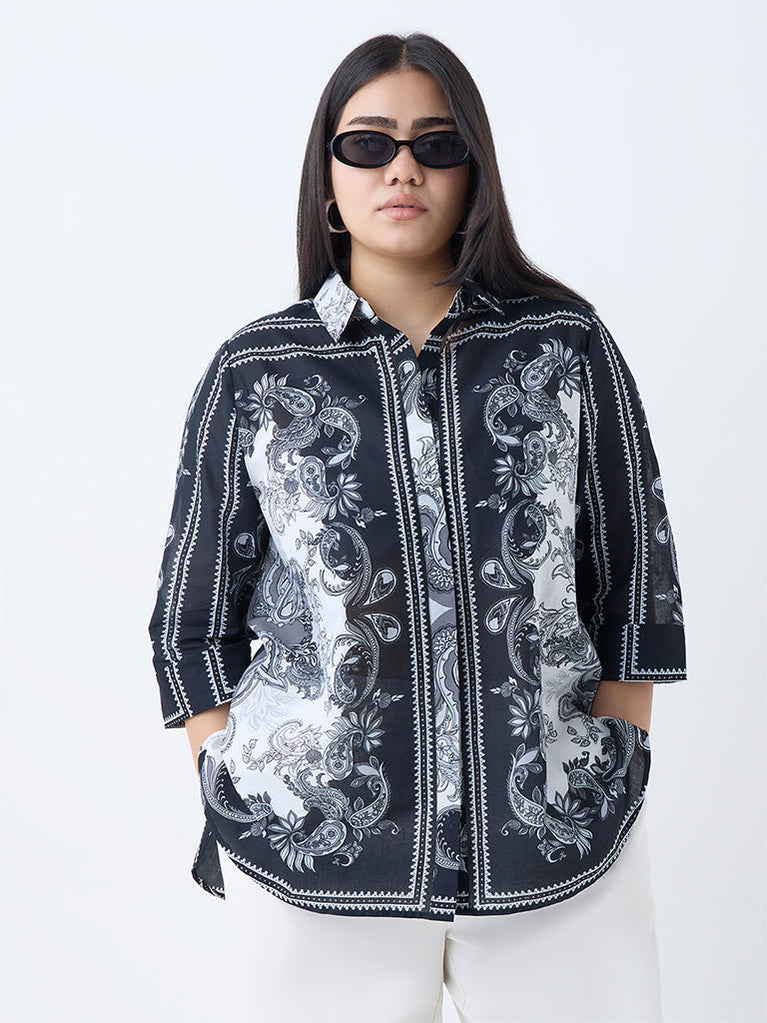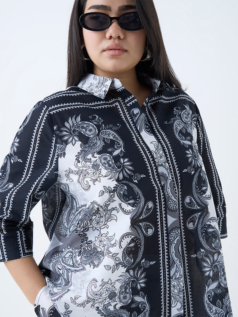 Gia Black Paisley Printed Cotton Shirt