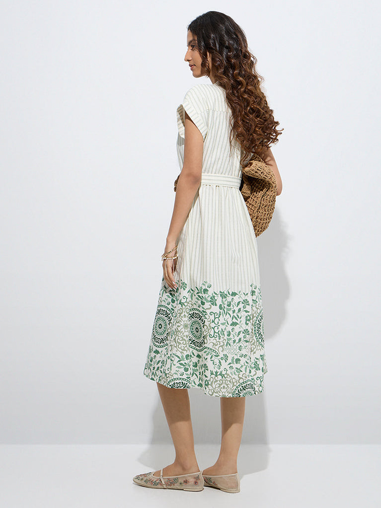 Bombay Paisley White Stripe Printed Cotton Shirt Dress