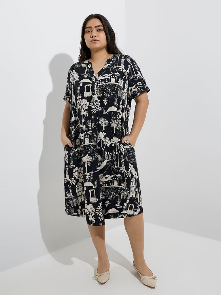 Gia Black Scenic-Inspired Cotton Straight Dress