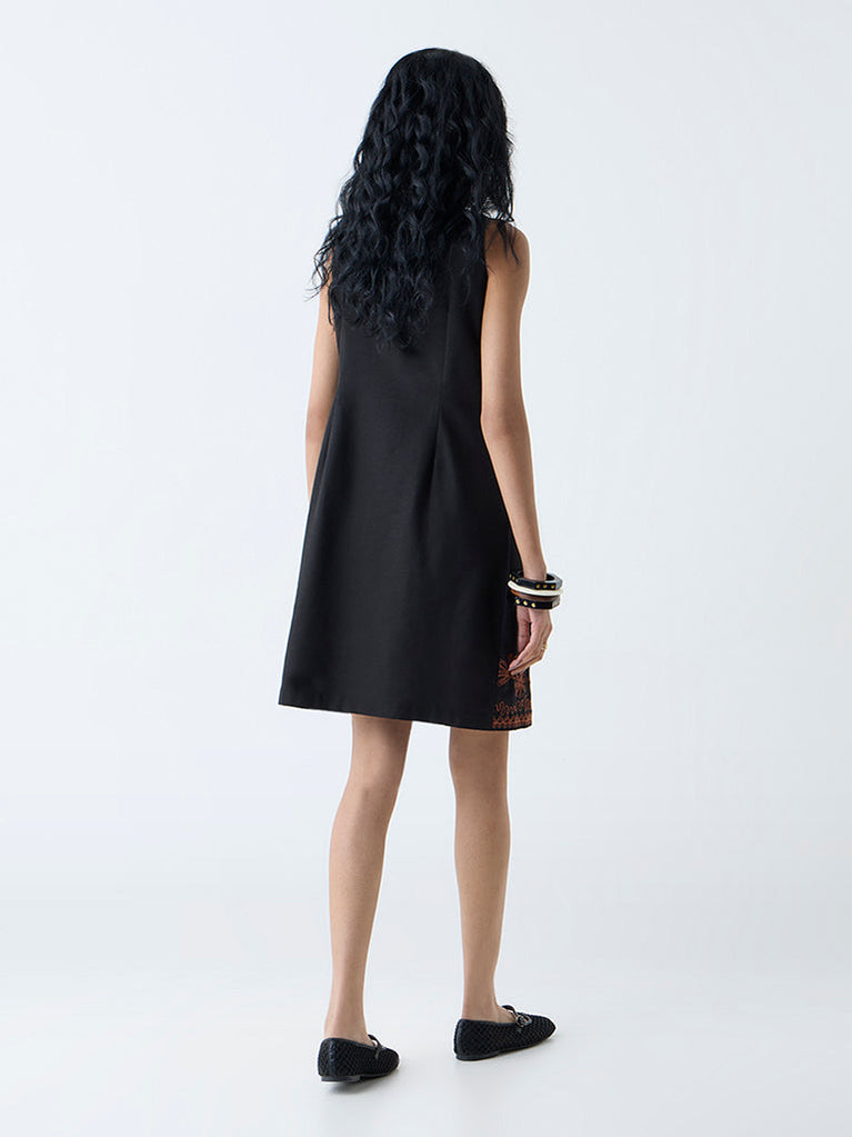 Bombay Paisley Black Embroidered Cotton-Blend Shift Dress