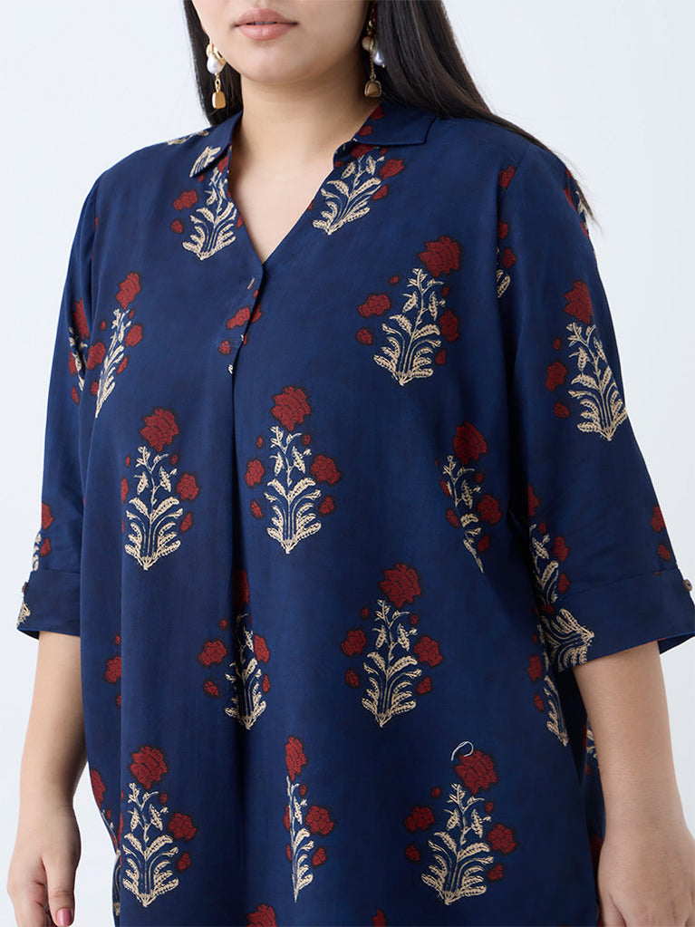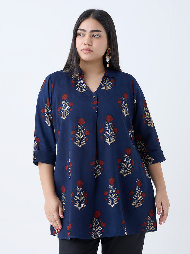 This navy tunic from Diza is a versatile pick for your daily wardrobe. Made from quality fabric and decorated with a graceful floral print, it features a V-neck collar and three-quarter sleeves that give it a polished finish.