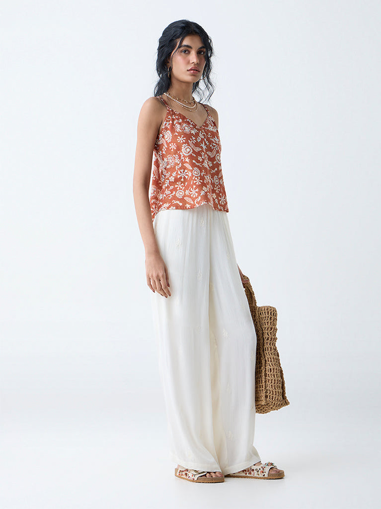 Bombay Paisley Off-White Floral Embroidered Cotton Top