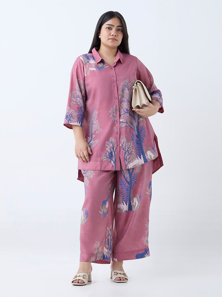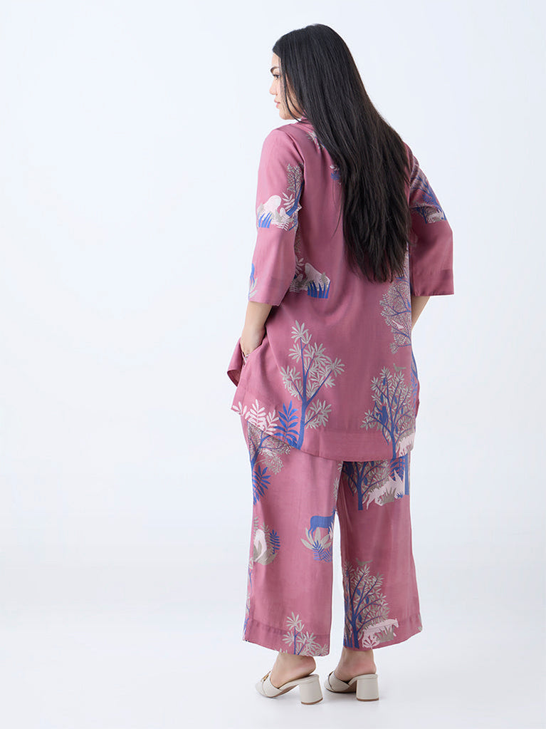 Diza Dusty Pink Forest-Themed Ethnic Pants