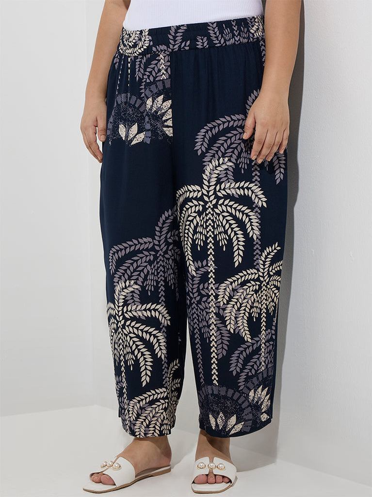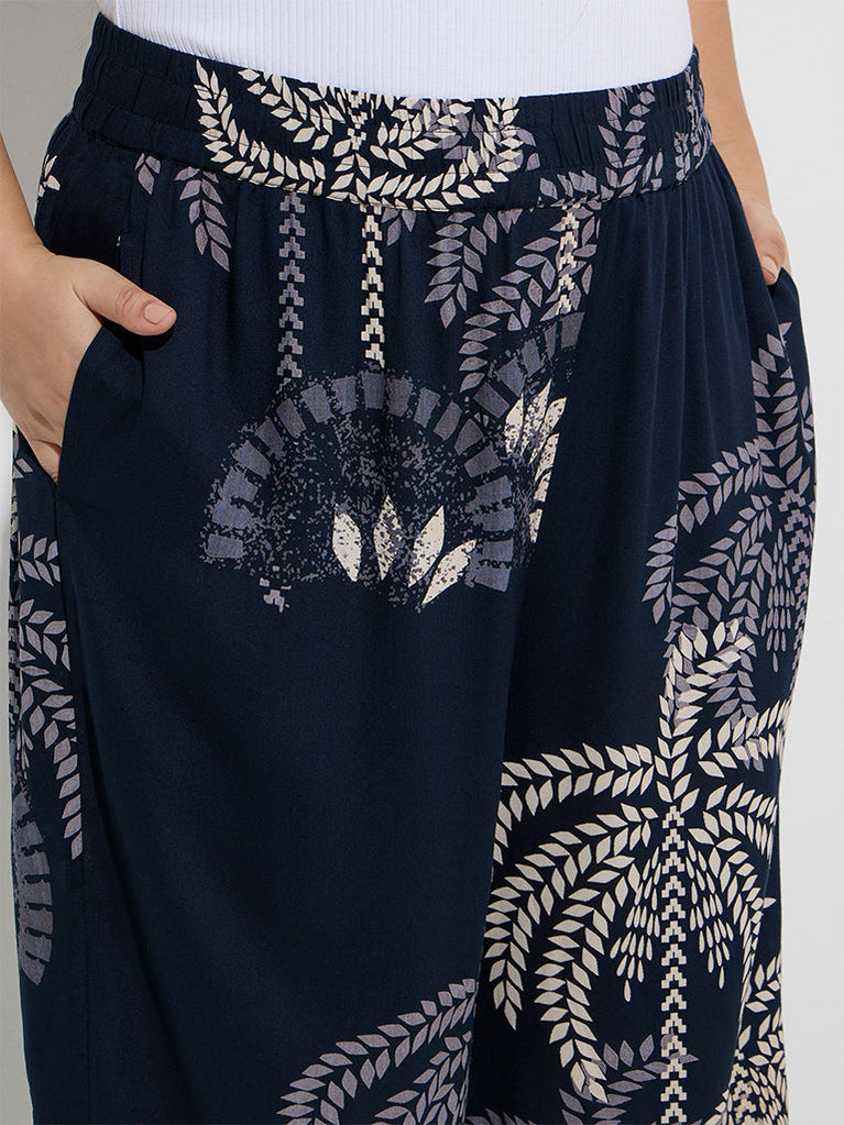 These navy ethnic pants from Diza are fashioned with tropical-inspired prints that evoke a breezy mood. Cut from a lightweight fabric, they’re designed for all-day comfort with a soft elasticated waistband, functional drawstrings, and practical side pockets.