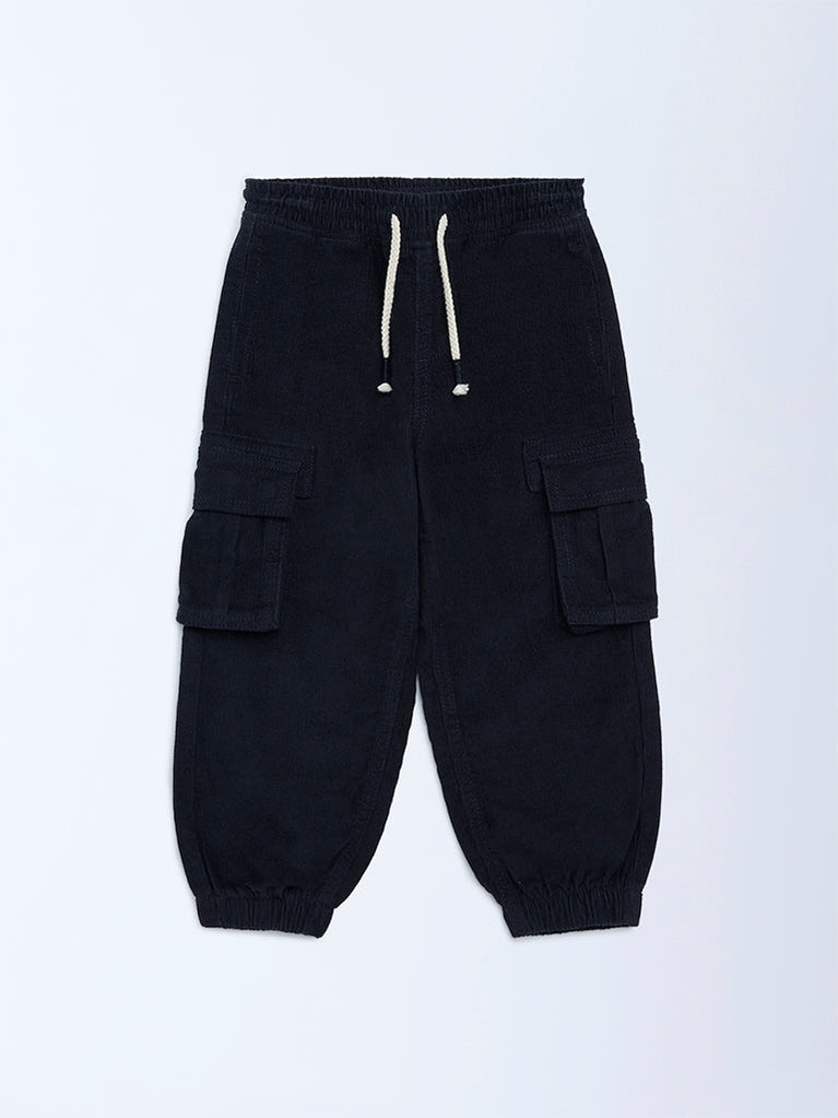 HOP Kids Boys Navy Mid-Rise Corduroy Joggers