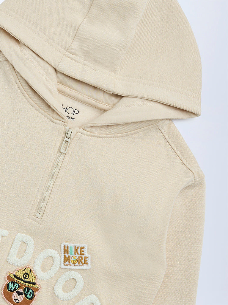 HOP Kids Boys Beige Embroidered Hooded Cotton-Blend Sweatshirt