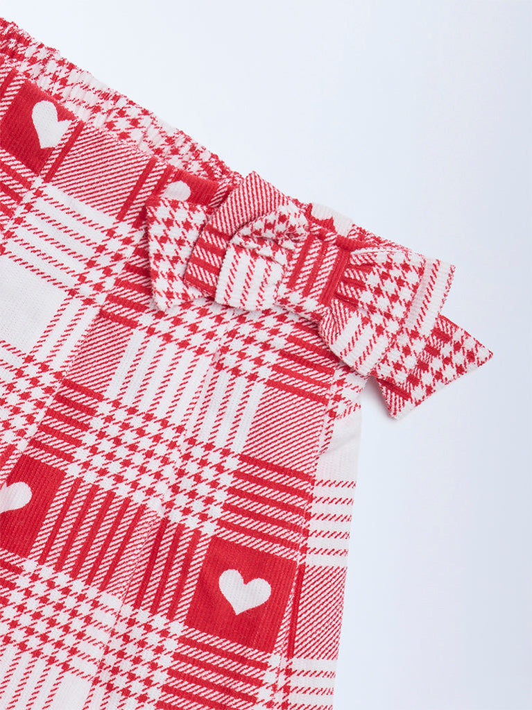 A cheerful pick for little wardrobes, this red skort from HOP Baby brings a playful twist to classic checks. Woven from a cotton-rich fabric, it offers a soft, easy feel that’s ideal for active days. The high-rise design is finished with built-in shorts, a sweet bow at the waist and heart motifs for added charm.
