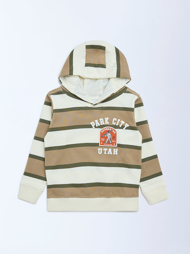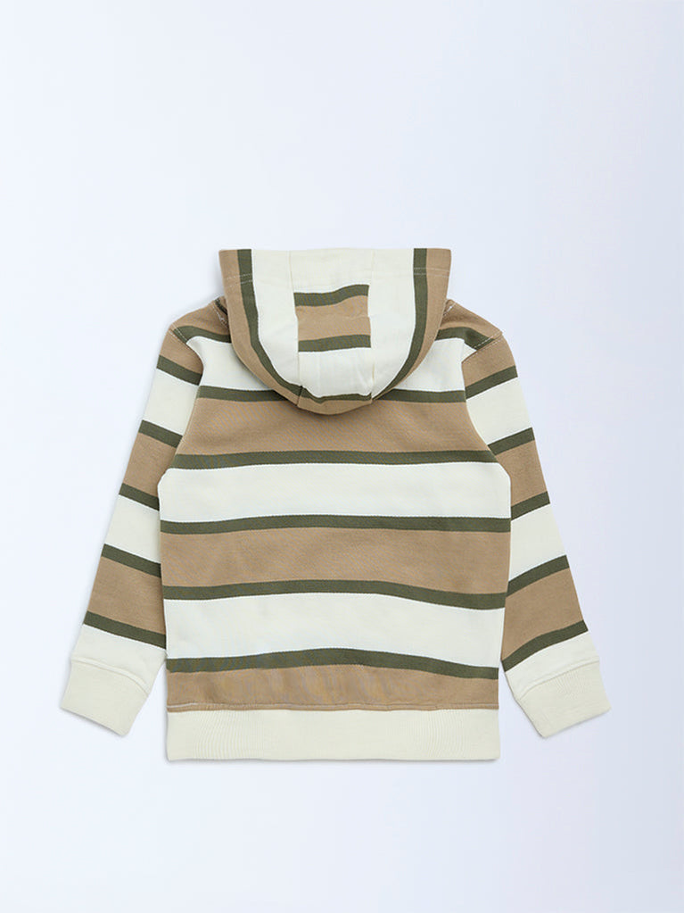 HOP Kids Boys Multicolour Striped Hooded Cotton Sweatshirt
